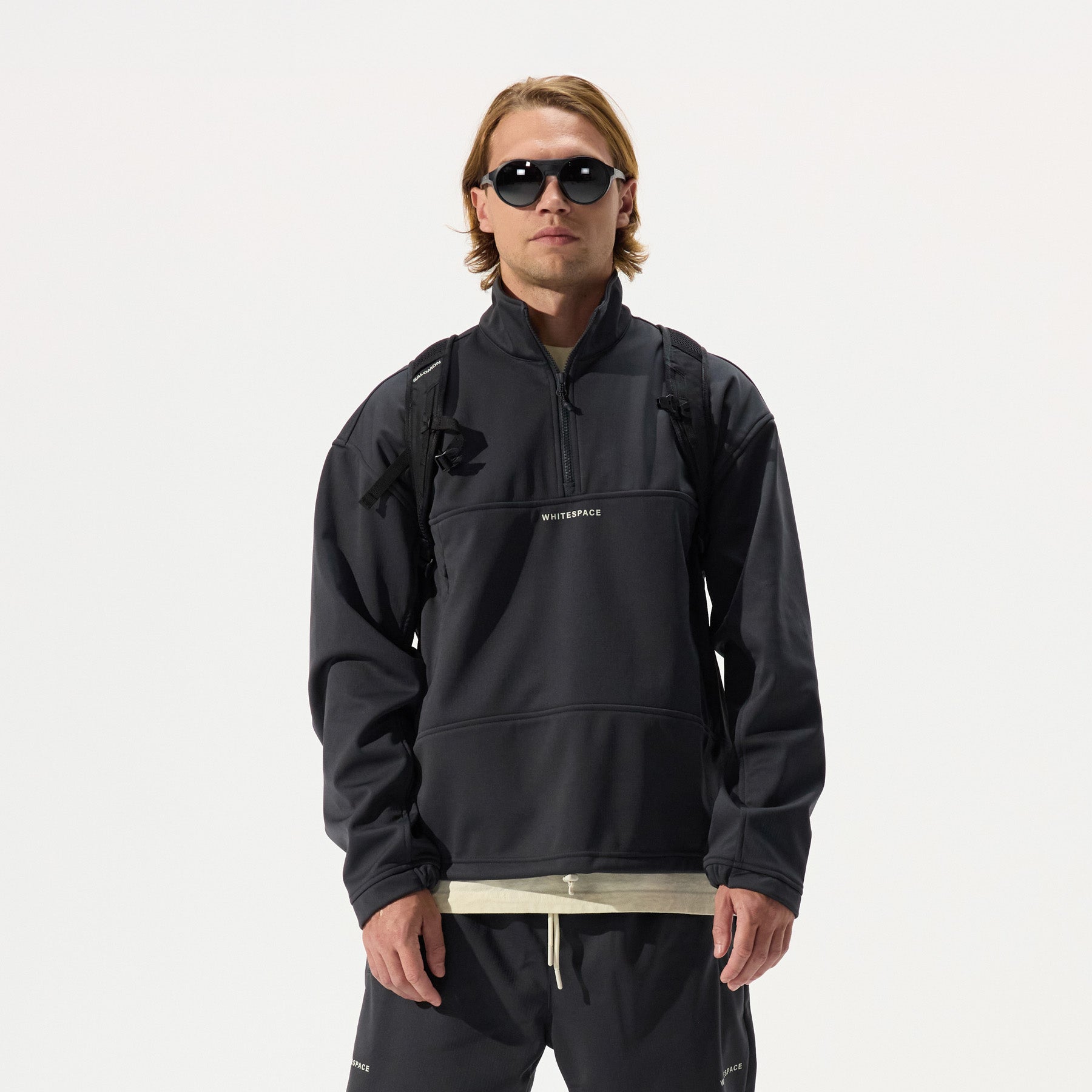 A streamlined quarter zip cut from lightweight softshell, this top delivers comfort with technical edge. Breathable stretch fabric and a PFC-free DWR finish provide weather resistance, making it a versatile layer for everyday wear.