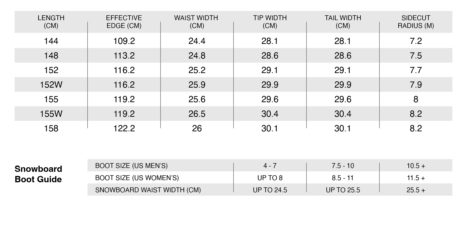 We increased our overall sidecut to provide stability and control when hitting rails and jumps.