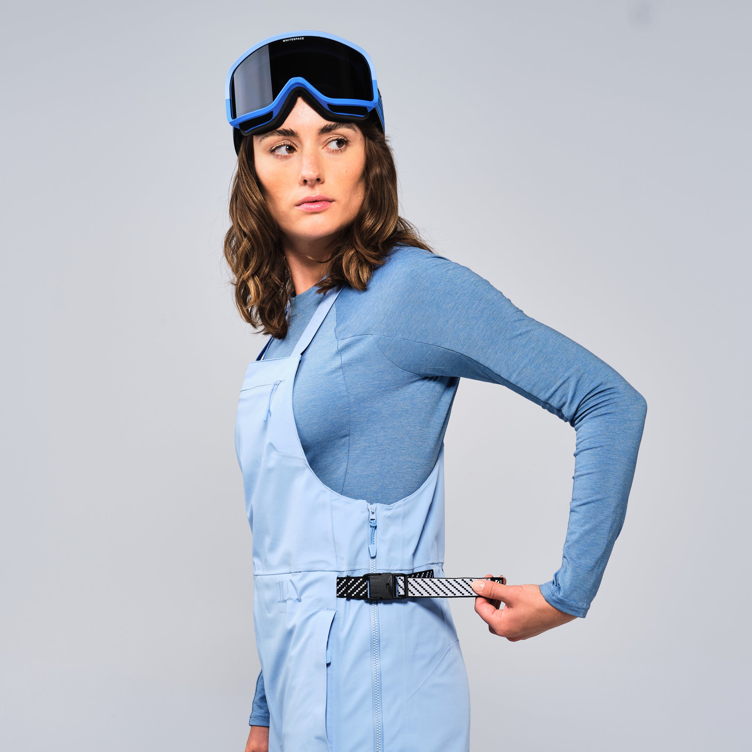Built for women focused on progression, the Performance Bib Pant offers a 3-layer waterproof shell with C0-DWR coating for all-weather comfort and protection. The baggy fit promotes ease of movement and layering, while fleece-lined thighs and seat provide extra warmth. Features like an adjustable waistband, side zippers, and heat vents enhance comfort. With fully taped Bemis 3L seams and DWR boot gaiters, these bibs are ready for any challenge.