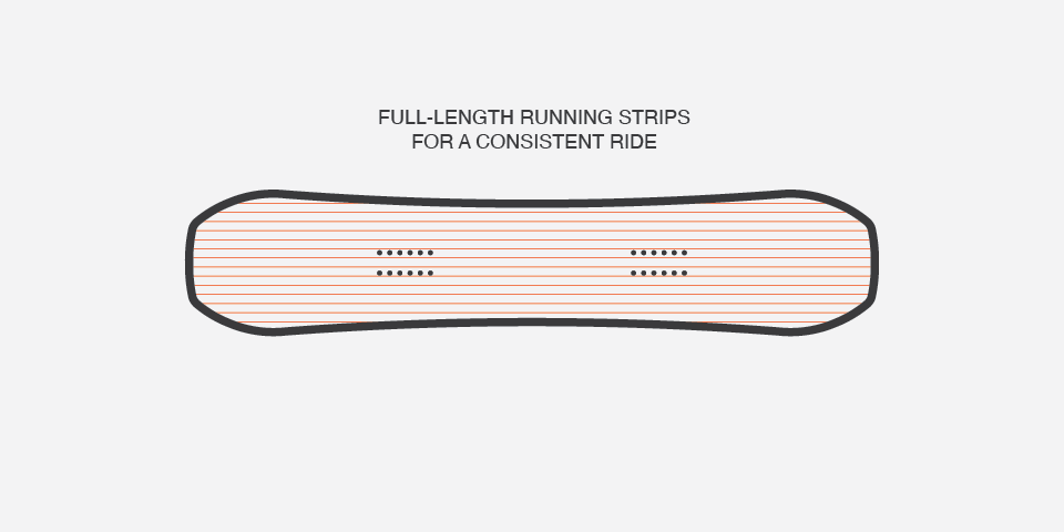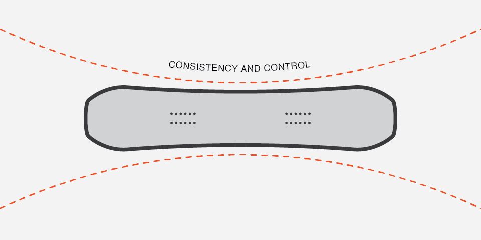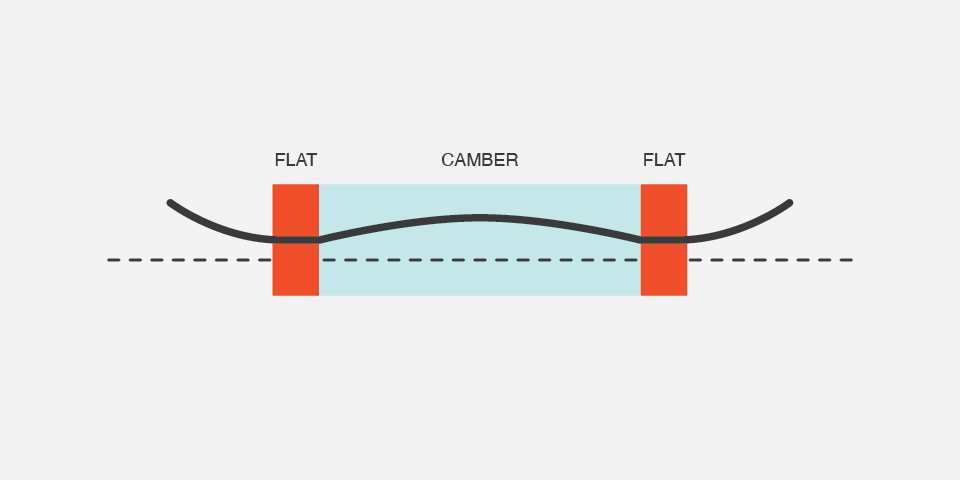 Our hybrid camber gives you more control on rails and landings, maintaining the response and power of a cambered board.