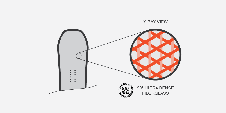 To deliver a better park riding experience, we used a 30° tri-axial ultra-dense weave (UDW) fiberglass to maximize snap and provide consistent flex throughout the board.