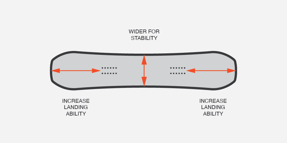 We increased our overall sidecut to provide stability and control when hitting rails and jumps.