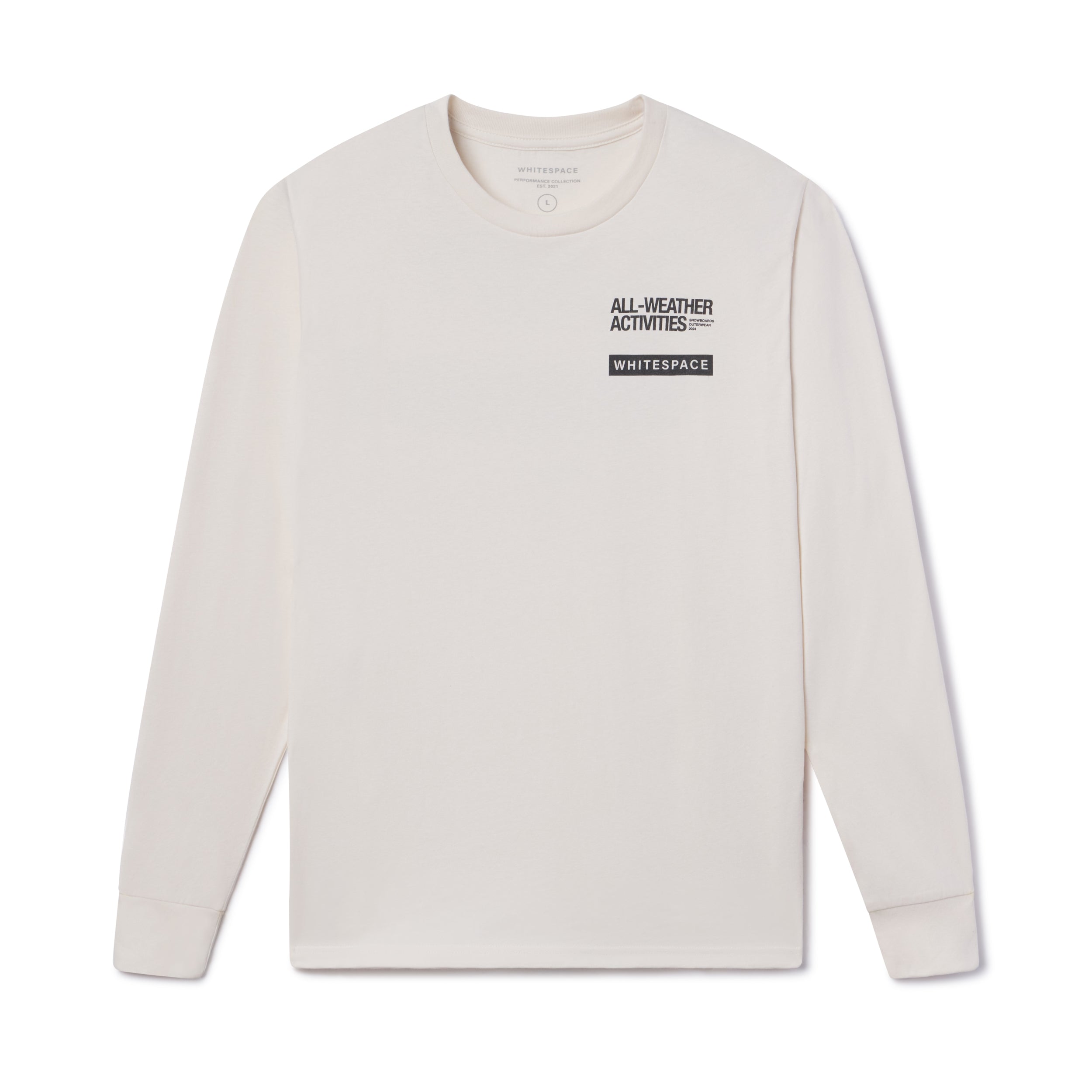With screen printed graphics at the left chest and back, you can rep WHITESPACE anywhere you go in this classic long-sleeve tee. A relaxed fit with ribbed collar and cuffs keeps you comfortable all day, every day.