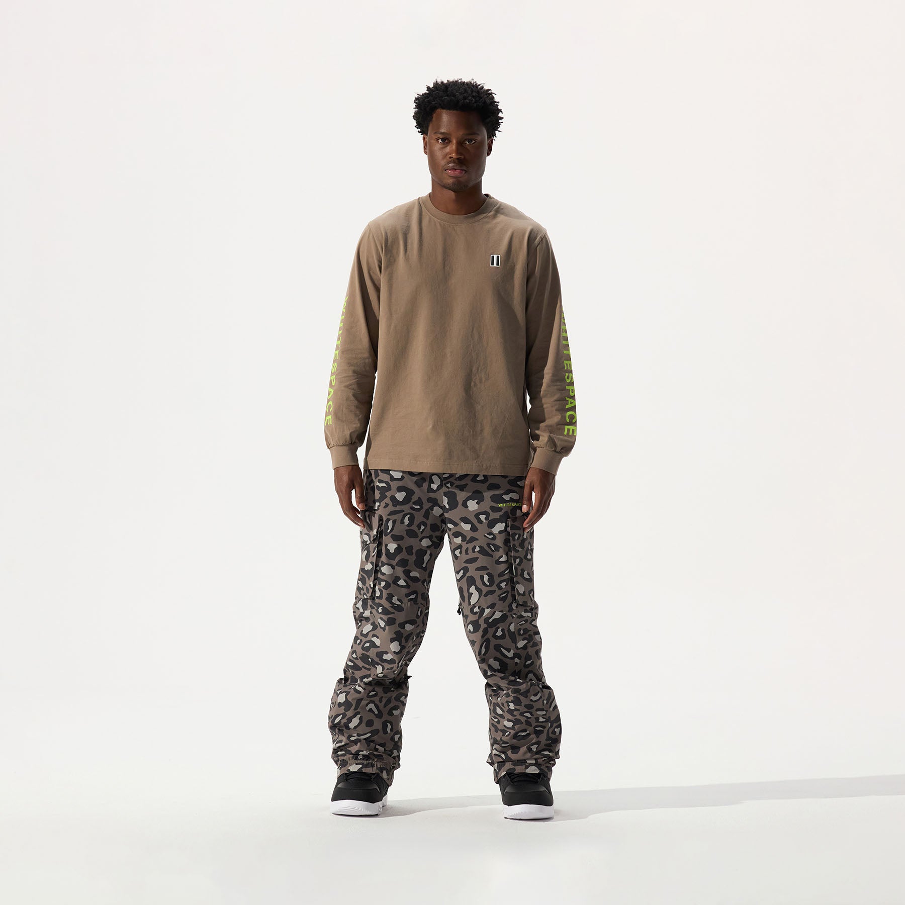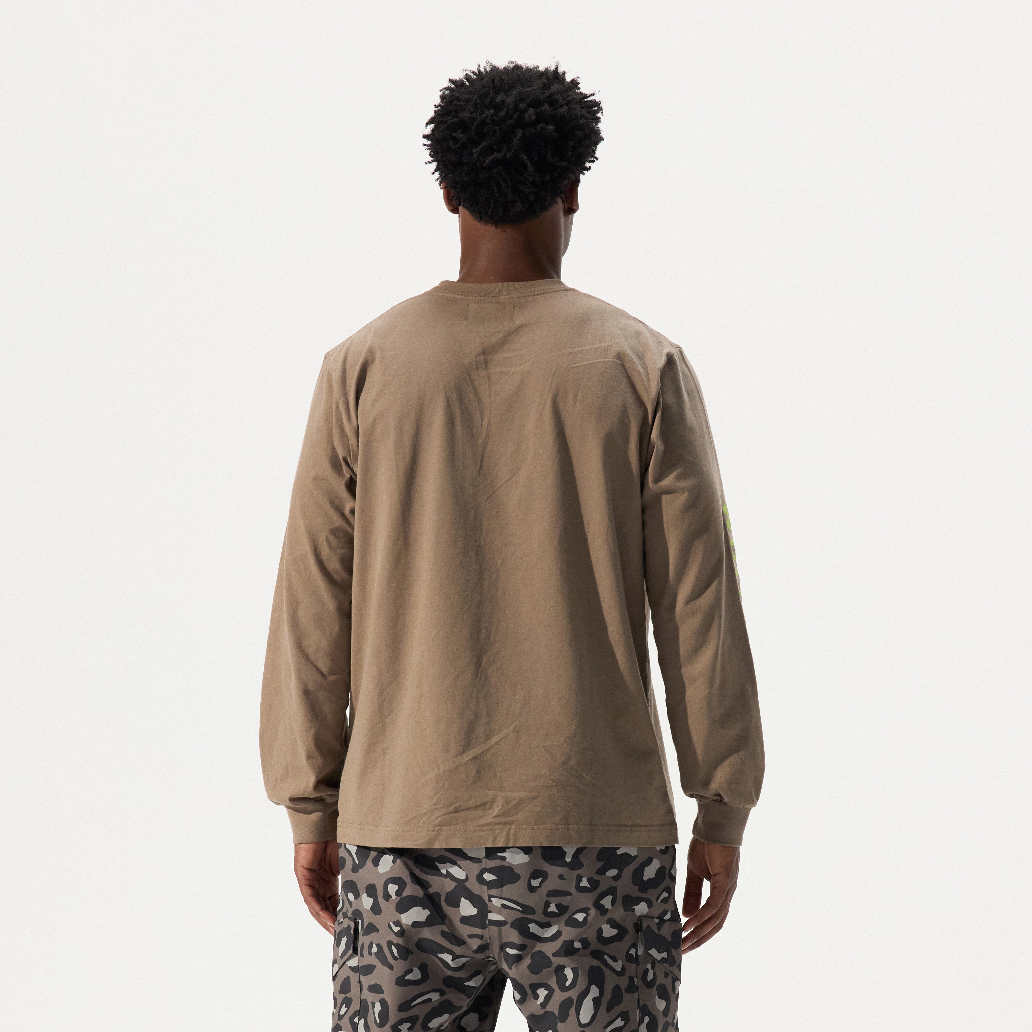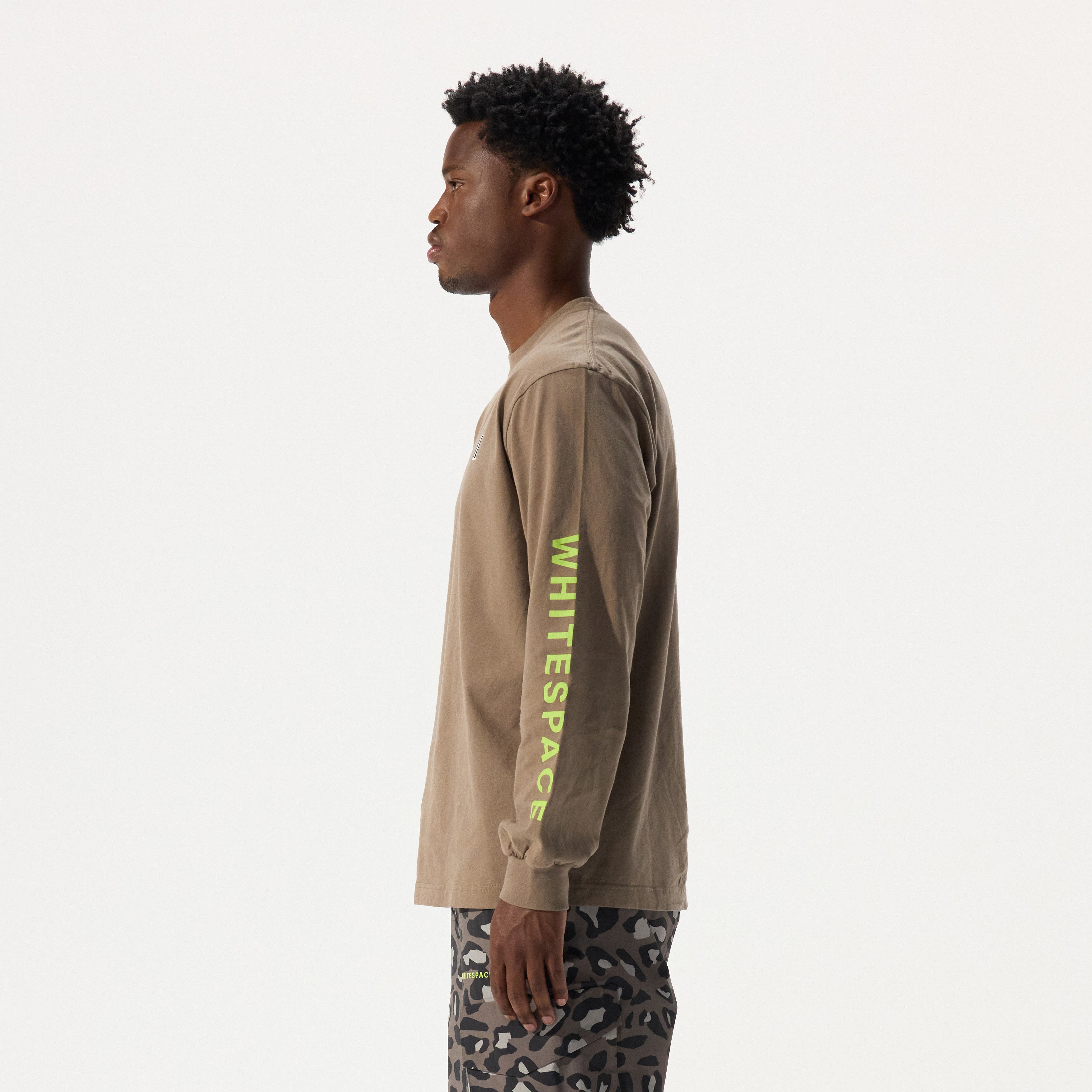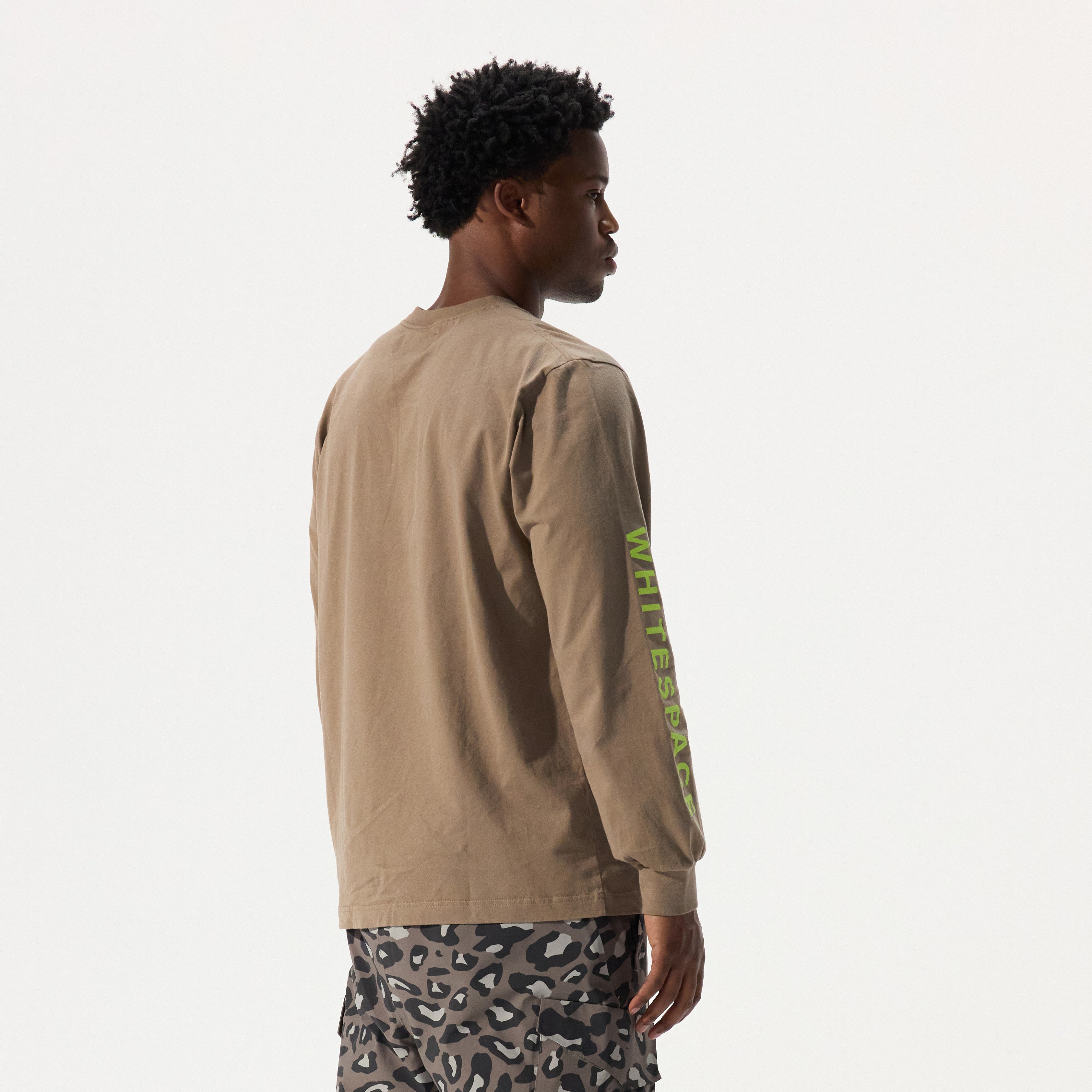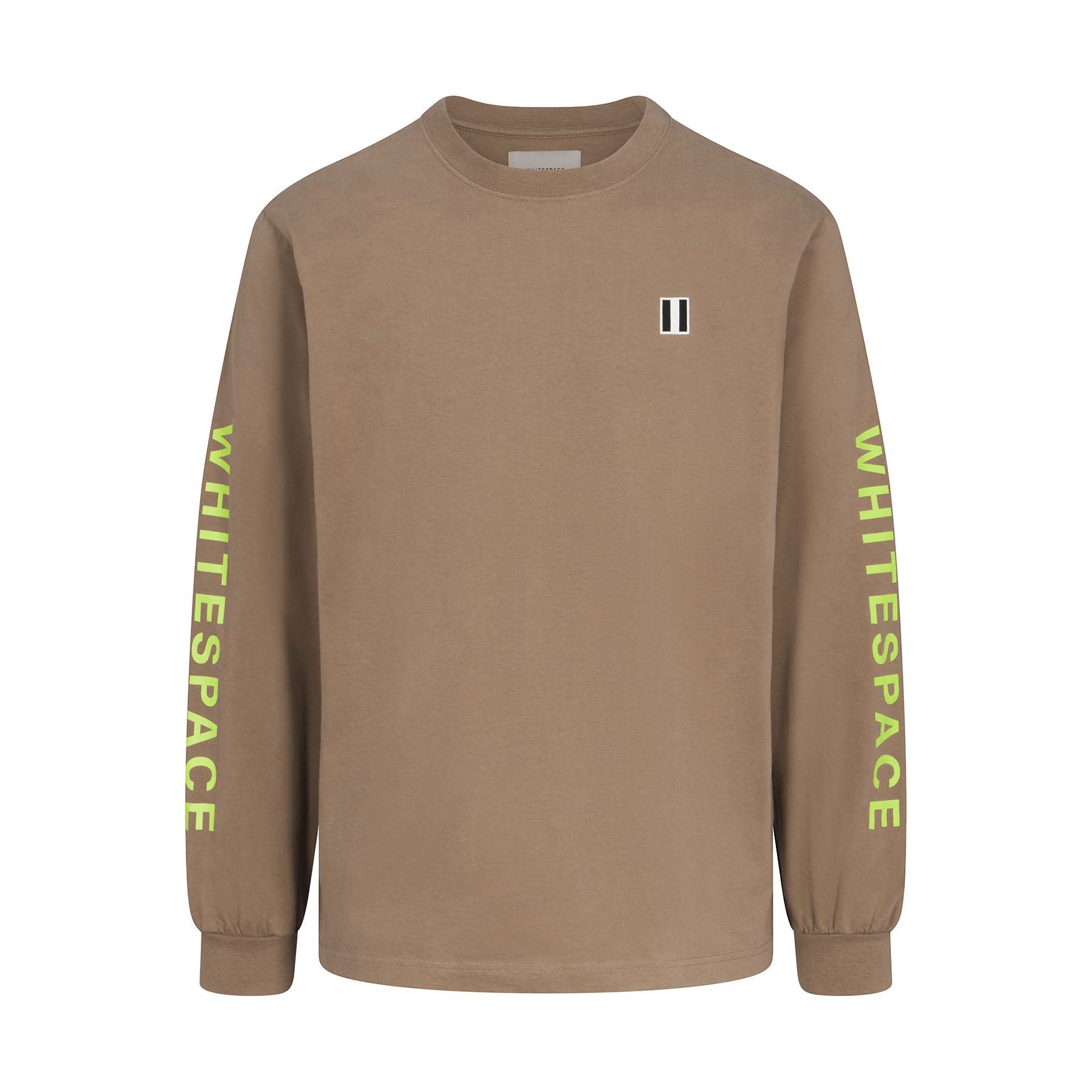 Wordmark logo screenprint on left and right sleeves, block logo screenprint on left chest