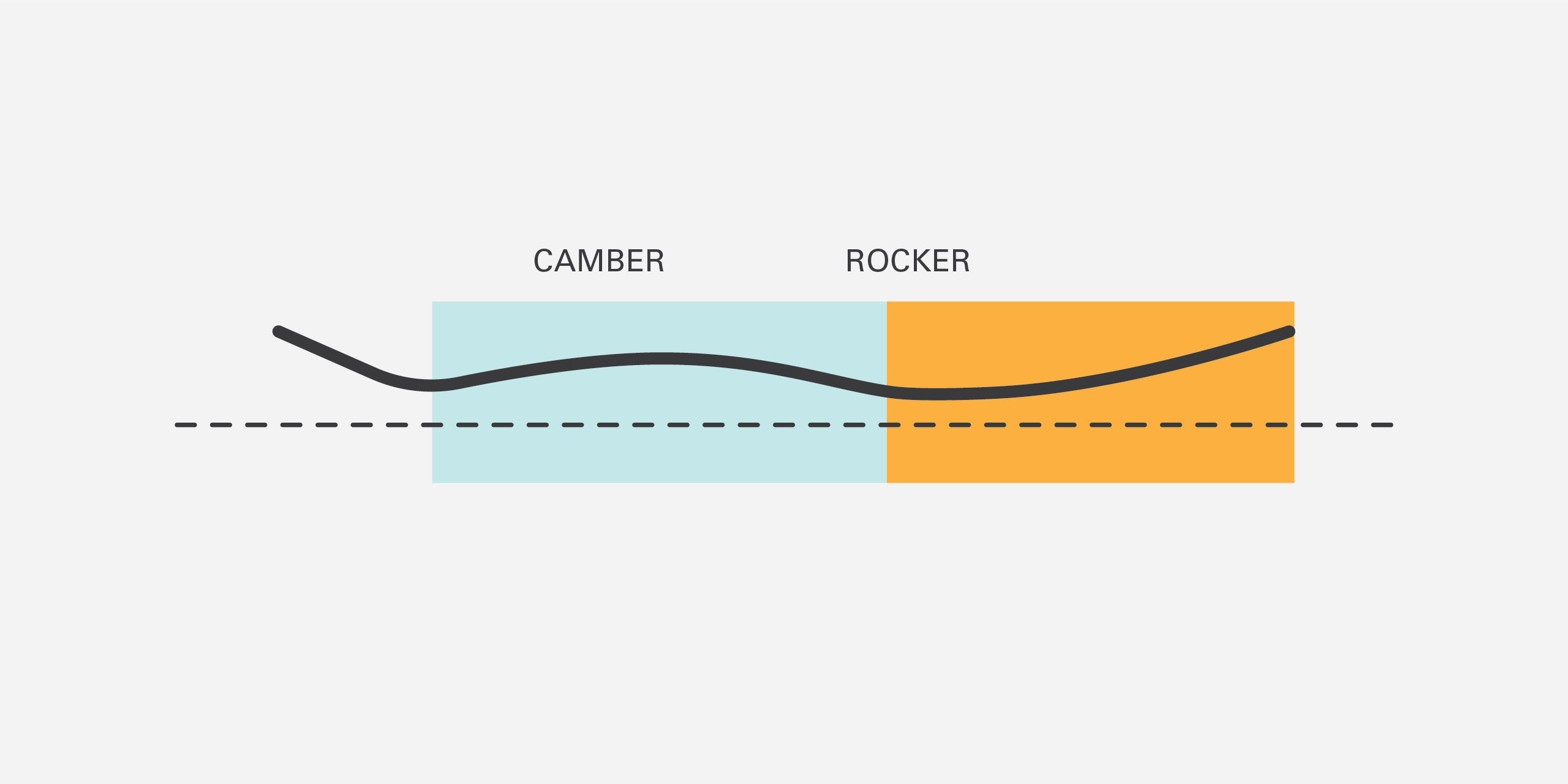 Blends camber stability with rocker float, delivering confident control across varied terrain.