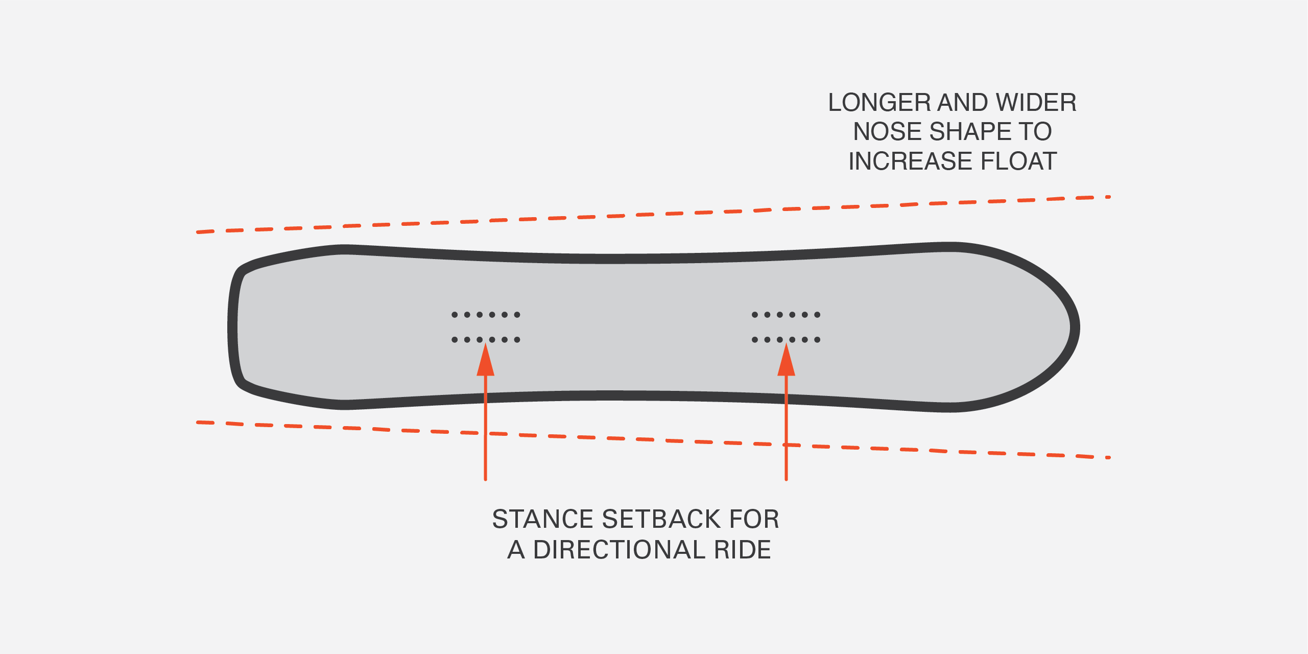 Spoon-shaped nose enhances float and glide, keeping turns smooth and effortless in powder.