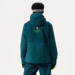 Model, from the back, wearing the 2L Insulated Cargo Jacket in Atlantic Deep colorway, on a white background.