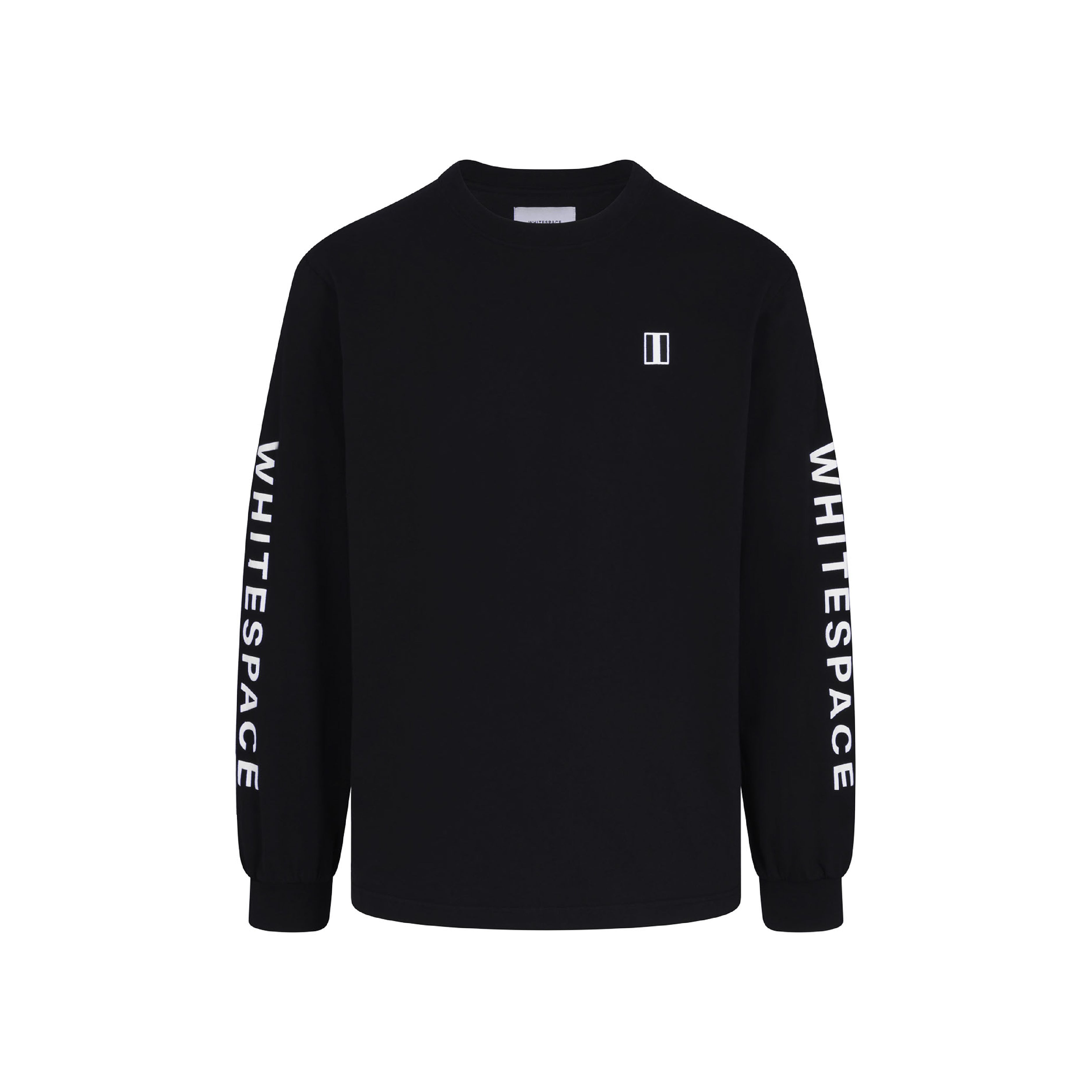 Wordmark logo screenprint on left and right sleeves, block logo screenprint on left chest