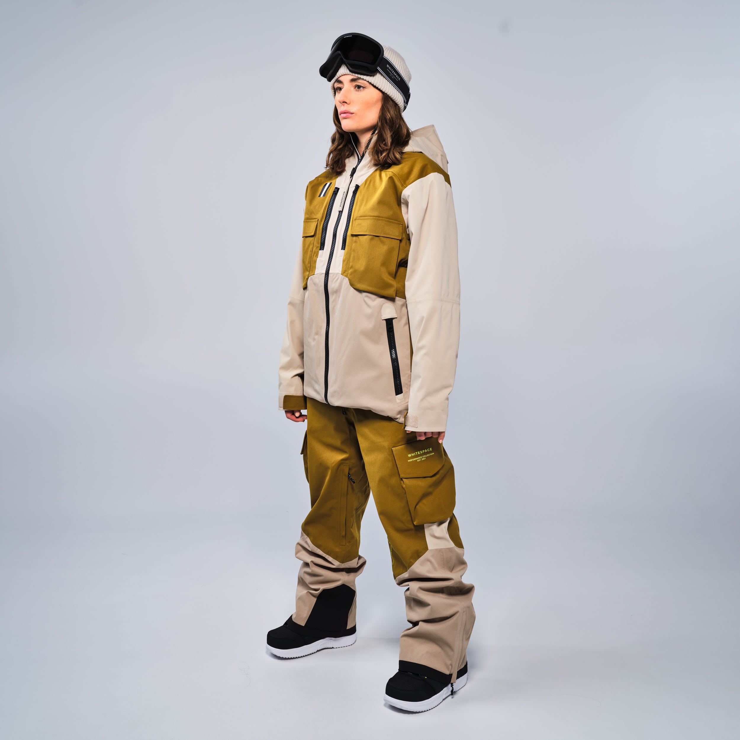 Built for all-day mountain wear, the 2L Cargo Insulated Bib Pant combines a rugged 2-layer waterproof shell and modular insulation for balanced warmth and breathability. Military-inspired styling meets functionality with multiple cargo pockets, adjustable straps, and a media-ready chest pocket. Kevlar kickpads and Bemis 3L taped seams enhance durability, while thigh vents and YKK zippers offer superior comfort and ventilation.