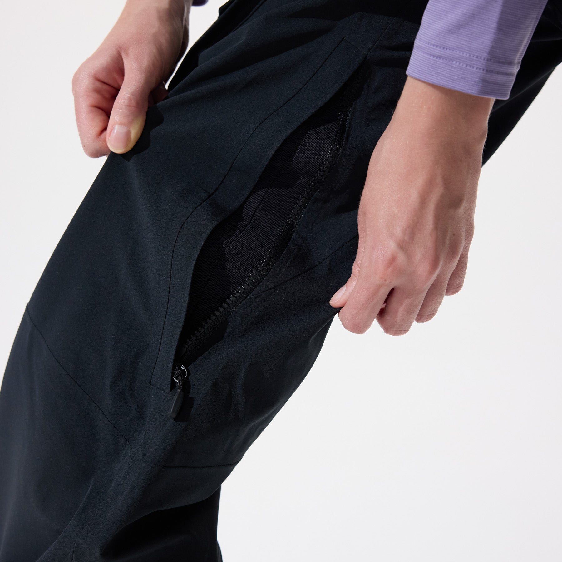 Built for women focused on progression, the Performance Bib Pant offers a 3-layer waterproof shell with C0-DWR coating for all-weather comfort and protection. The baggy fit promotes ease of movement and layering, while fleece-lined thighs and seat provide extra warmth. Features like an adjustable waistband, side zippers, and heat vents enhance comfort. With fully taped Bemis 3L seams and DWR boot gaiters, these bibs are ready for any challenge.