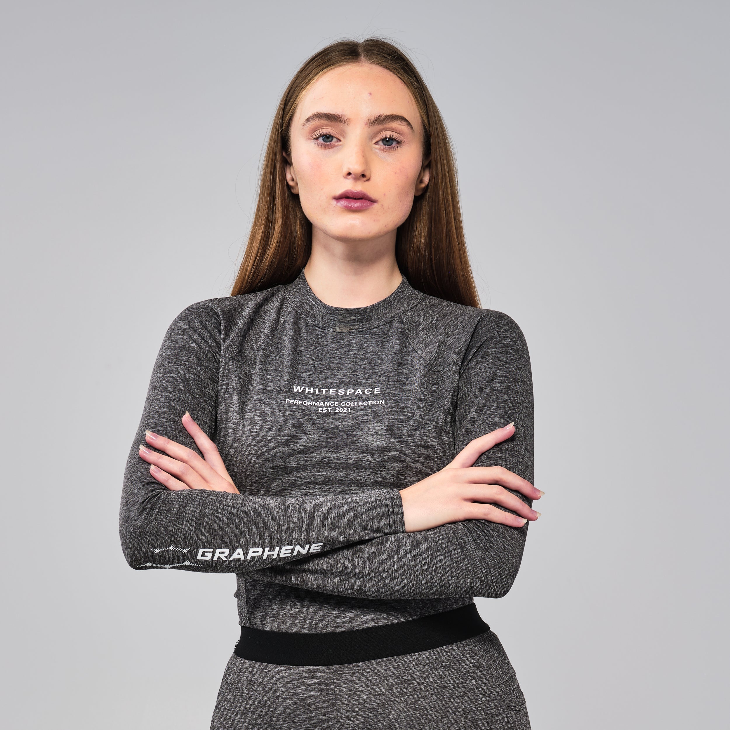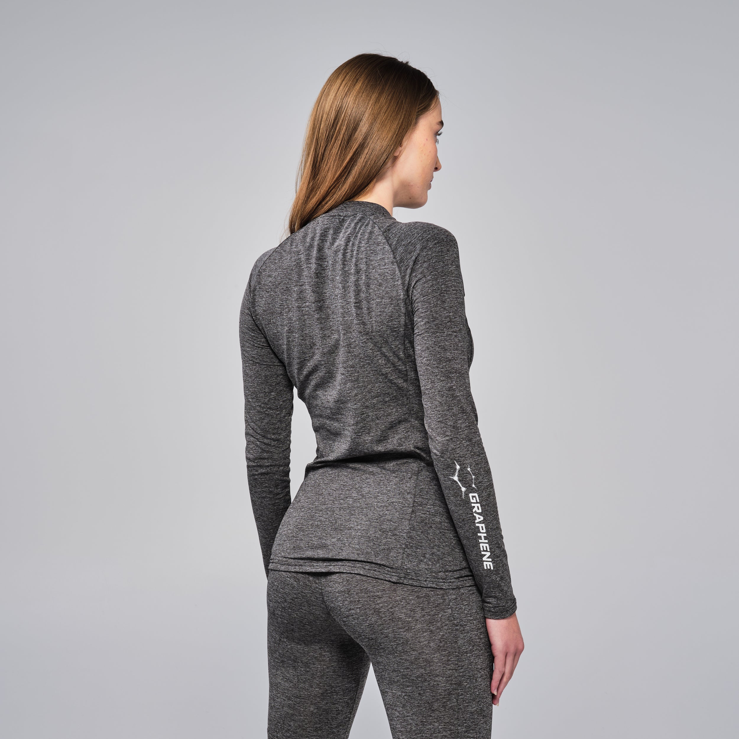 The Graphene Mockneck offers a perfect balance of warmth and breathability. Its graphene-infused fabric traps heat while wicking moisture, keeping you dry and comfortable. The mock neck design provides extra coverage, while 4-way stretch and form-focused paneling ensure a flattering, unrestricted fit. With an ultra soft brushed back lining and antibacterial properties, this top is ideal for cold-weather layering.